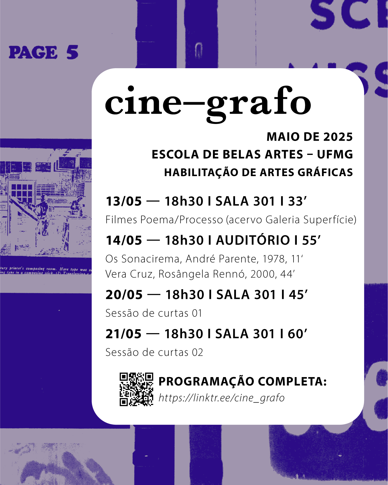 Programação completa: https://linktr.ee/cine_grafo