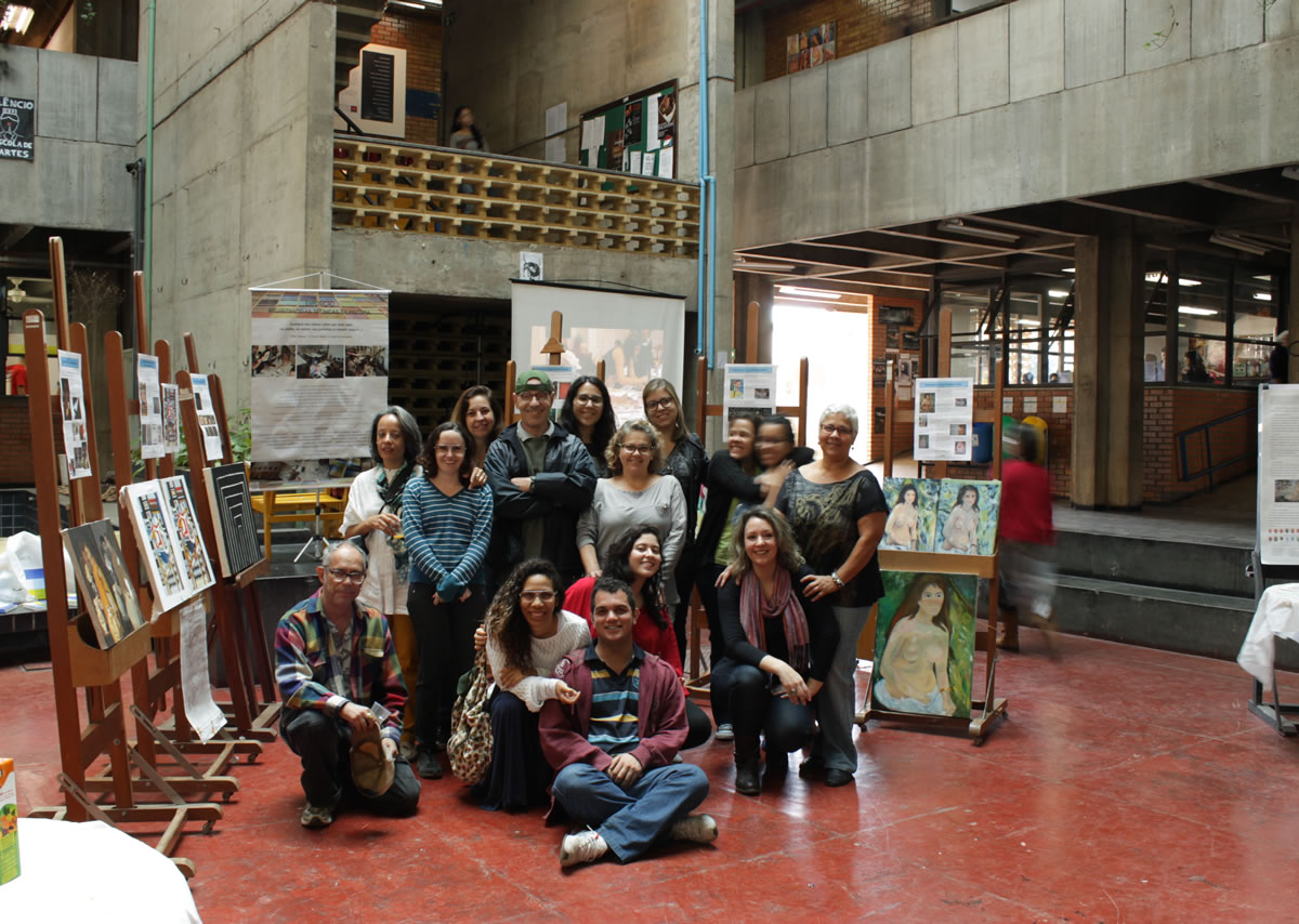 Alunos da disciplina Técnicas e Materiais Pictóricos, com a Profa. Marilene Corrêa Maia