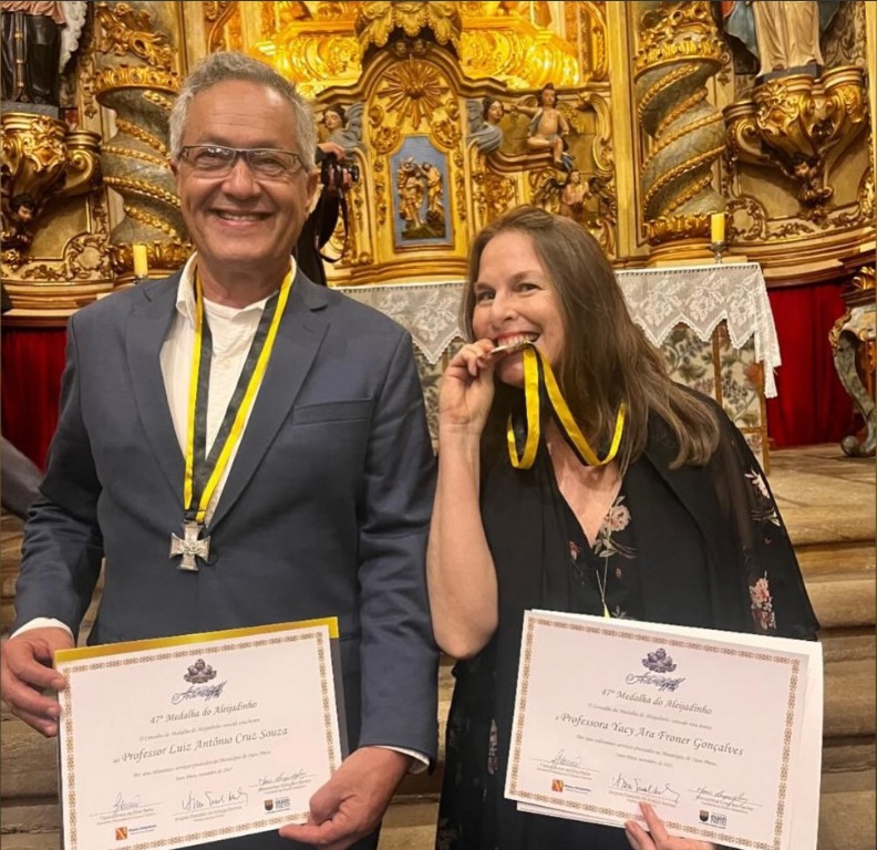 Celebramos com enorme alegria a conquista dos professores Luiz Souza e Yacy Ara Froner, que receberam no dia 18 de novembro, a Medalha Aleijadinho, uma das mais importantes honrarias concedidas pela Prefeitura de Ouro Preto.